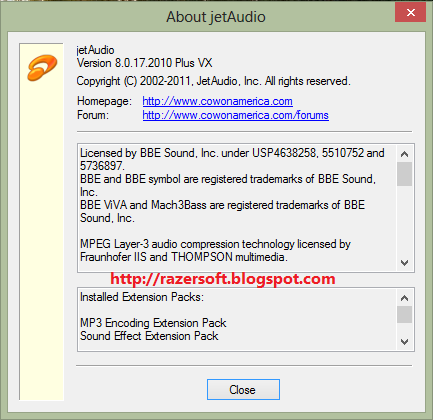 jetAudio is integrated multimedia software composed of a single compact rack. Not only does it play various music and video files, but it also has other features such as CD burning, recording, conversion to other file formats, and so on. In addition to these features, you have the ability to create your own Internet broadcasting by using JetCast, which is provided with JetAudio. Play all major file formats and discs, including WAV, MP3, MP3Pro, OGG, WMA, MPG, AVI, WMV, MIDI, RM, and video, and audio CD. Convert among audio file formats, and record analog audio to various formats. The program features Internet broadcasting with JetCast; visualization plug-ins, including Sound2Vision; tag editing for MP3, OGG, and WMA; various sound effects including wide, reverb, and x-bass; multichannel sound output; speed control of audio playback; crossfading for smooth transition between two songs; a skinnable user interface; synchronized lyrics display (karaoke) for MIDI and MP3 files; and subtitles.