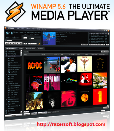 Nullsoft Winamp is a fast, flexible, high-fidelity media player for Windows. Winamp supports playback of many audio (MP3, OGG, AAC, WAV, MOD, XM, S3M, IT, MIDI, etc) and video types (AVI, ASF, MPEG, NSV), custom appearances called skins, audio visualization and audio effect plug-ins (including two industry dominating visualization plug-ins), an advanced media library, Internet radio and TV support, CD ripping, and CD burning. Winamp supports playback of Windows Media Video and Nullsoft Streaming Video, as well as most of the video formats supported by Windows Media Player. 5.1 Surround sound is supported where formats and decoders allow. This player supports many types of streaming media: Internet radio, Internet telelvision, XM Satellite Radio, AOL video, Singingfish content, podcasts, and RSS media feeds. It also has extendable support for portable media players, and users can access their media libraries anywhere via internet connections.