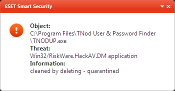 ESET products have recently updated their virus database so that they recognize both the installer and the executable tnode as viruses (which is a false positive), as shown in the image below.