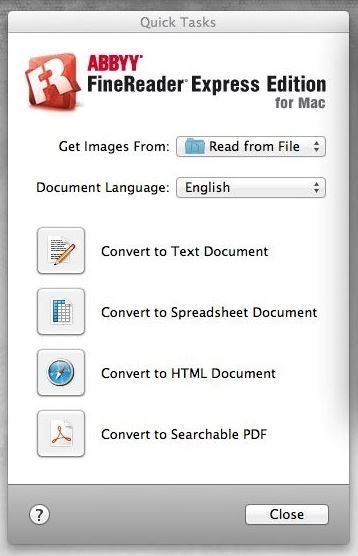 ABBYY FineReader Express Edition for Mac is a highly accurate and easy-to-use multi-lingual OCR application designed specifically for Mac users. Based on ABBYY's intelligent document recognition technologies, FineReader Express for Mac quickly turns any scanned paper document, PDF files and digital camera images into editable and searchable formats while keeping the original layout and formatting in tact.